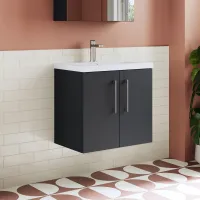 Nuie Arno 600mm 2 Door Soft Black Wall Hung Vanity Unit With Thin Edge Basin