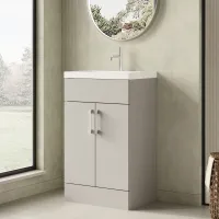 Hudson Reed Fluted 600mm Satin Grey Floor Standing 2-Door Vanity Unit With Basin