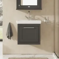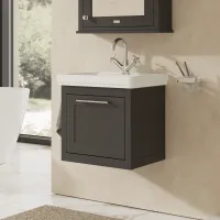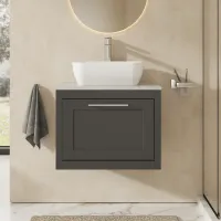 BC Designs Crestfield 600mm 1 Drawer Dark Lead Wall Hung Vanity Unit With 1 Tap Hole Fireclay Basin