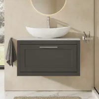 BC Designs Crestfield 800mm 1 Drawer Earls Grey Wall Hung Vanity Unit With 1 Tap Hole Fireclay Basin