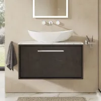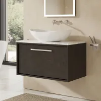 BC Designs Roseburn 800mm Wall Hung 1 Drawer Unit with Marble Worktop in Metallic Slate With Soft Close Drawer