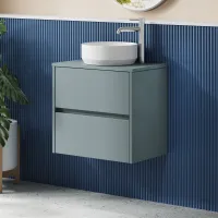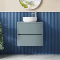 Nuie Havana 600mm Coastal Grey Wall Hung 2 Drawer Unit with Worktop
