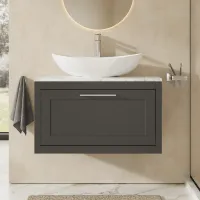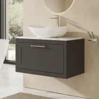 BC Designs Crestfield 800mm 1 Drawer Earls Grey Wall Hung Vanity Unit With Fireclay Basin