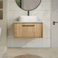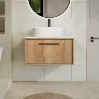 Nuie Lux Roseburn 800mm 1 Drawer Autumn Oak Wall Hung Vanity Unit With Fireclay Basin
