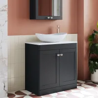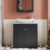 Nuie Classique 800mm 2 Door Soft Black Floor Standing Vanity Unit With 1 Tap Hole Marble Basin