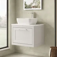 BC Designs Crestfield 600mm 1 Drawer Earls Grey Wall Hung Vanity Unit With Fireclay Basin