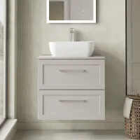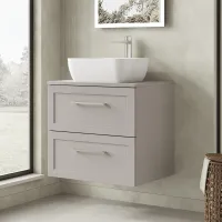 Hudson Reed Lille 600mm Coastal Grey Wall Hung Single Drawer Vanity Unit With 3 Tap Hole Basin