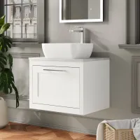 Nuie Lux Larck 600mm 1 Drawer Matt White Wall Hung Vanity Unit With 1 Tap Hole Fireclay Square Basin