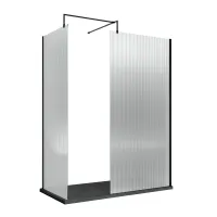 Nuie 800mm x 1850mm Fluted Matt Black Wetroom Screen Including Support Bar