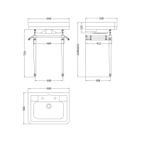 BC Designs Victrion 640mm 2 Tap Hole Basin with Ornate Stand