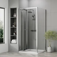 Nuie 900x900mm Bi-Fold Shower Enclosure With Side Panel & Shower Tray