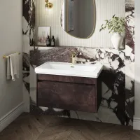 Roseburn 800mm Wall Hung 1 Drawer Unit and Co-ordinating Worktop - Graphite Grey Woodgrain