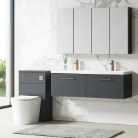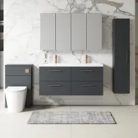 Nuie Arno 1205mm Soft Black Wall Hung 4 Drawer Vanity Unit with Double Basin