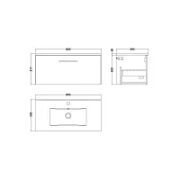 Nuie Arno 600mm Wall Hung 1 Drawer Vanity Unit with Basin With Handle