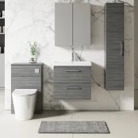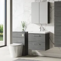 Nuie Arno 600mm Wall Hung Anthracite Woodgrain 2-Drawer Vanity Unit & Basin With Soft Close Drawers