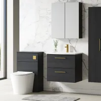 Nuie Athena 500mm Wall Hung 2 Drawer Charcoal Black Vanity Unit With 1 Tap Hole Basin