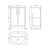 Floor Standing 2 Door Vanity Unit with 1 Tap Hole Black Marble Top 600mm