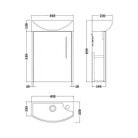 Hudson Reed Juno Compact 440mm Wall Hung Single Door Unit With 1 Tap Hole Basin Right Hand