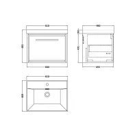 Hudson Reed Lille 600mm Antique Oak Wall Hung Single Drawer Vanity With Marble Worktop
