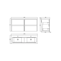 Nuie Havana 1205mm Wall Hung 4 Drawer Vanity Unit with Double Basin