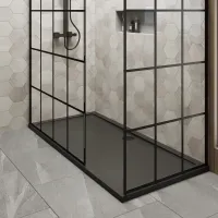 Nuie 1700mm x 800mm Matt Black Wetroom Screen Set With Slate Grey Tray