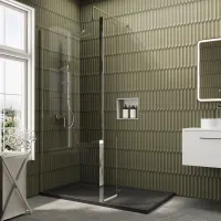 Nuie 1400mm x 700mm Chrome Framed Wetroom Screen with Return Screen With Slate Grey Tray