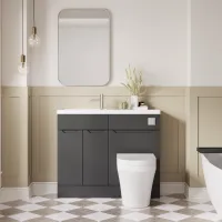 Nuie Lux Fable 1100mm Soft Black Traditional Combination Unit & L-Shaped Basin Rigid Soft Close