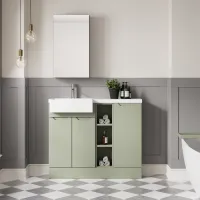 Nuie Lux Loave 1000mm Reed Green Left Hand Combination Unit & Basin With Soft Close Doors