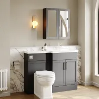 Nuie Lux Fable 1200mm Soft Black Combination Unit with Right Hand L-Shaped Basin & Soft Close Doors