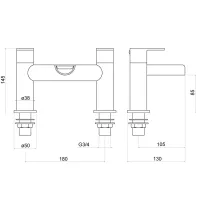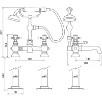 Bayswater 3-Hole Wall Mounted Basin Mixer With Spout X-Head & Hex Collar