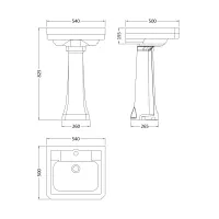 Nuie 500mm Traditional 1 Tap Hole Basin With Chrome Stand