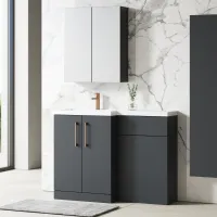 Nuie 440mm Metallic Slate Wall Hung Cloakroom Vanity & Toilet Unit With Tap, Soft Close Seat, Cistern & Flush Plate