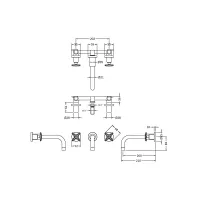 Aztec Wall Mount 3 Tap Hole Basin Mixer
