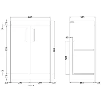 Nuie Arno Compact 600mm Floor Standing 2-Door Vanity Unit With Basin