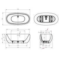Synergy Pebble 1660mm Modern Double Ended Bath