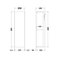 Krest 200mm Slab Wall Cabinet - 180mm Deep