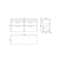 Nuie Athena 1200mm Wall Hung 4 Drawer Soft Close Gloss White Vanity Unit With Twin Basin