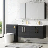 Nuie 1200mm Charcoal Black Wall Hung 4-Drawer Vanity Unit With Laminate Worktop