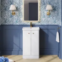 Deco Compact Floor Standing 1 Door Vanity Basin Unit & Ceramic Basin, 400mm