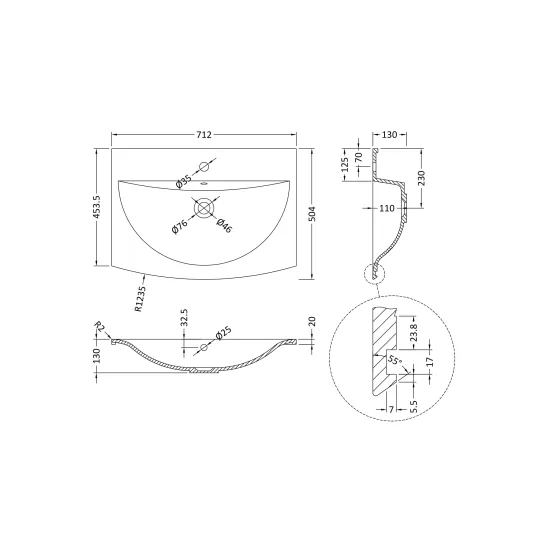 Hudson Reed Sarenna Curved 1 Tap Hole Polymarble Basin 700mm