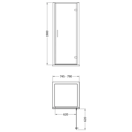 nuie Lucie 800mm Hinged Shower Door- Matt Black