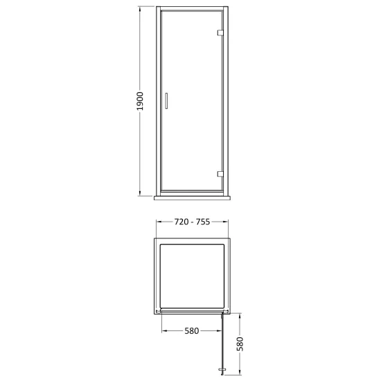 Bayswater 1900 x 760mm Hinged Shower Door - Brushed Brass