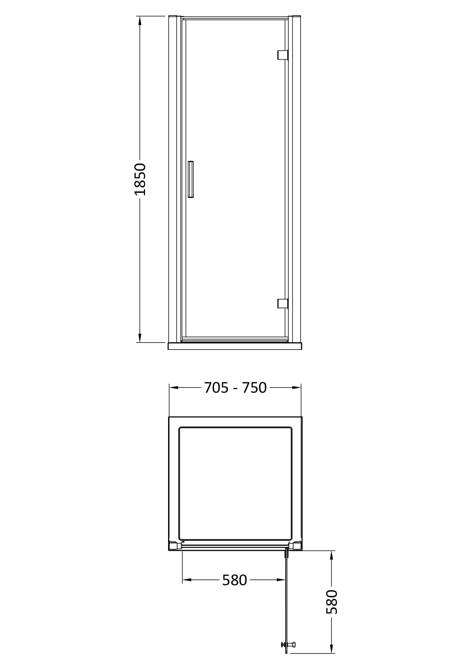 Pacific 800mm Hinged Door 6mm Glass