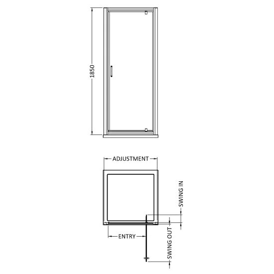 nuie Ella 900mm Pivot Door - 5mm Glass - Chrome