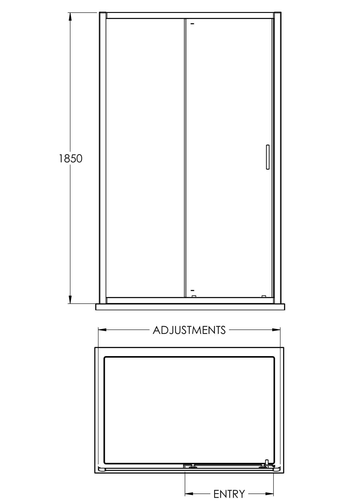 nuie Choice Ensky 1850 x 1100mm Sliding Shower Door - Brushed Brass