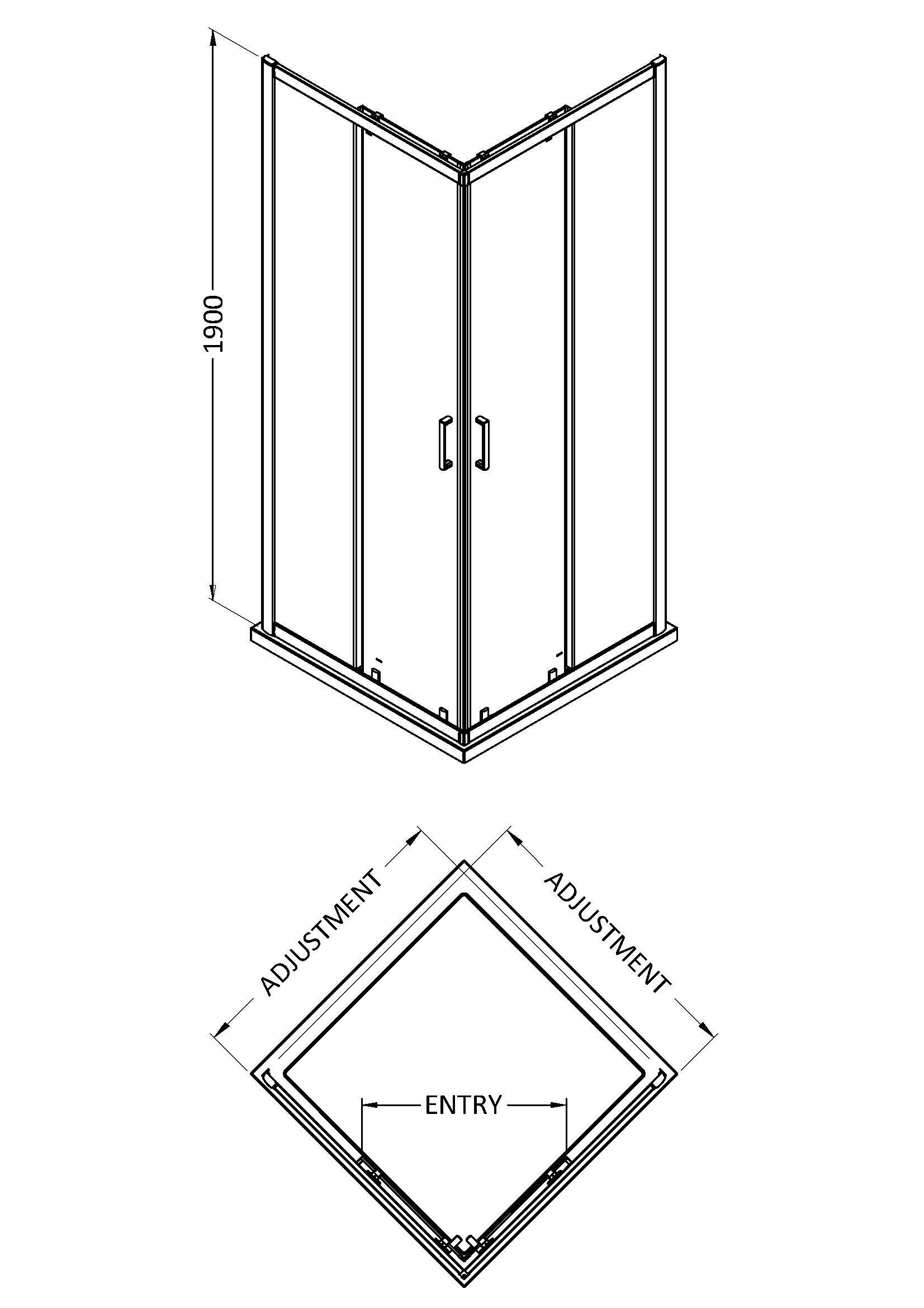 Bayswater 1900 x 900mm Corner Entry - Chrome