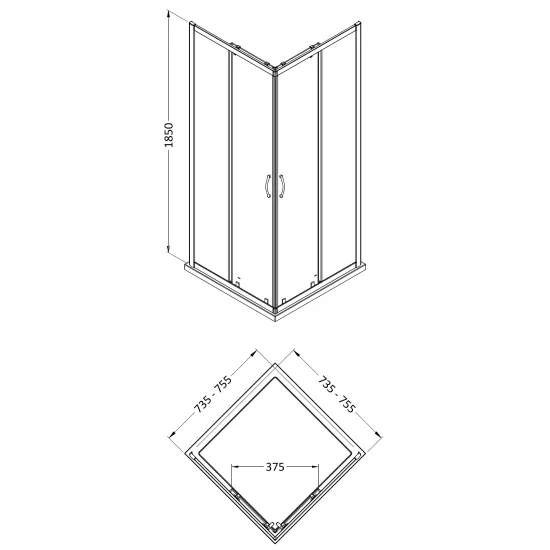 Ella 1850 x 760mm Corner Entry Shower Enclosure