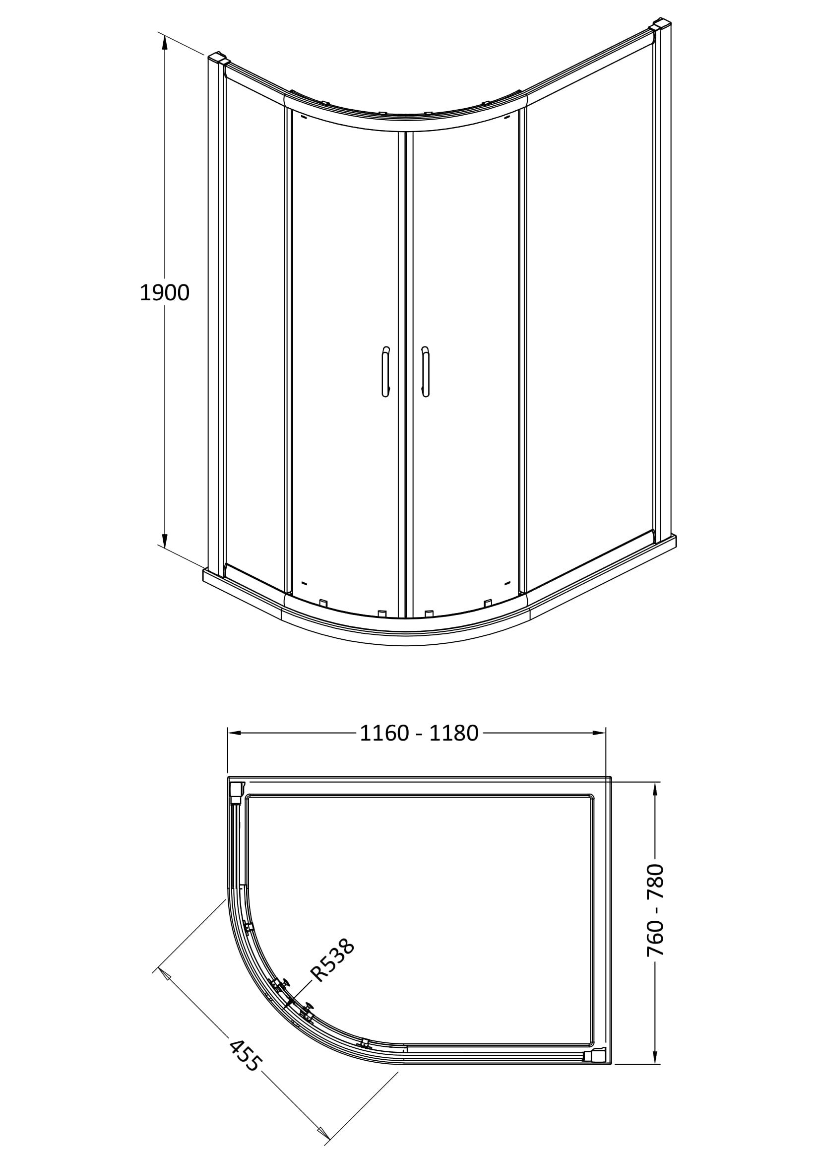 Nuie 1200mm x 800mm Matt Black Offset Quadrant Shower Enclosure