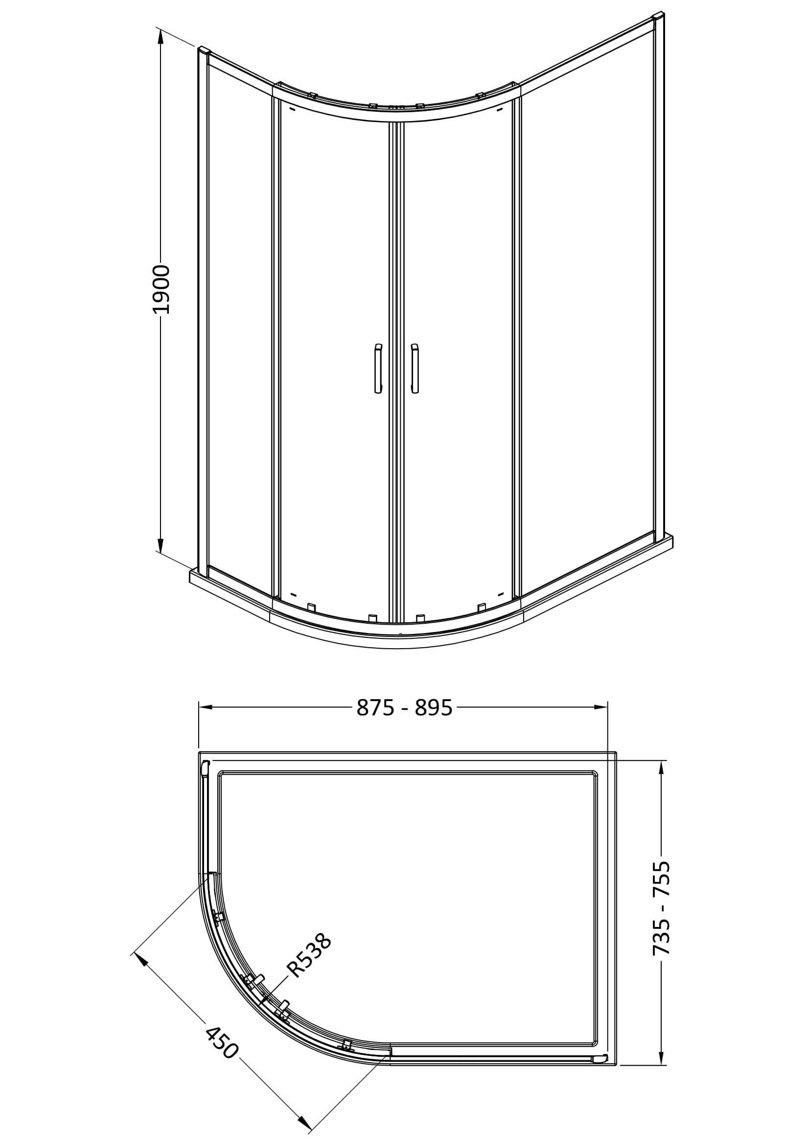 Bayswater 1900 x 900 x 760mm Quandrant Shower Enclosure - Chrome