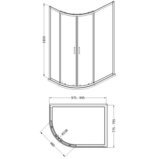 Ella 1850 x 1000 x 800mm Offset Quad Enclosure